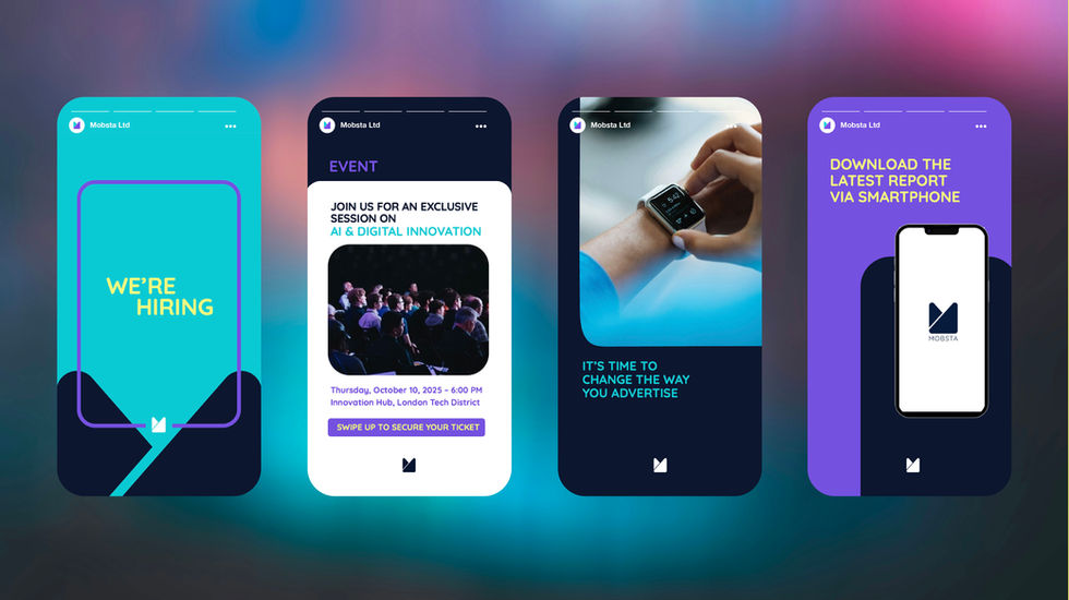 I particularly enjoyed sourcing imagery that complemented the vivid colours, giving the brand a bold, dynamic feel that helped position Mobsta more competitively as a forward-thinking tech company in the market and engage more effectively with clients.